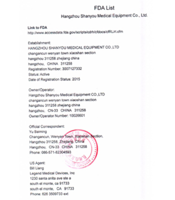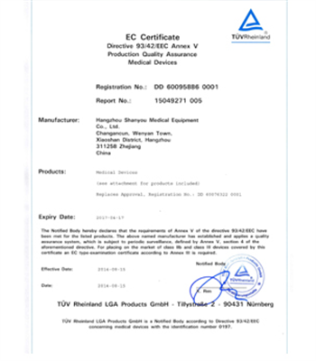 公司经过全体员工的努力,已通过了ISO 9001和 ISO 13485体系认证, 产品已通过了CE和FDA认证,产品已销售到美国,欧洲,亚洲美洲和非洲等国,博得广大客户价廉物美的美誉。