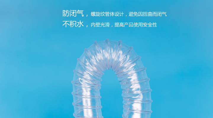 3、独特螺旋纹管体设计,防止因扭曲而产生闭气;